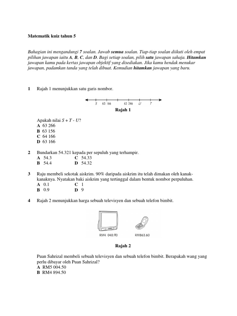 - Soalan Pertengahan Tahun Matematik Tahun 5